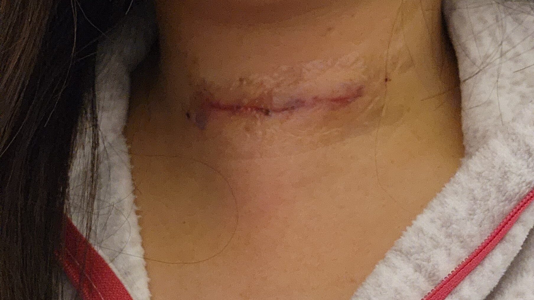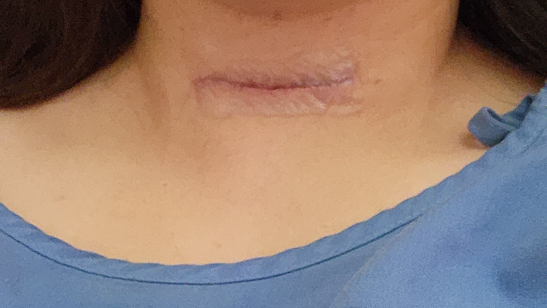 當我從麻醉中甦醒後,才知道我的甲狀腺只切除了左葉。原因是因為我的腫瘤鈣化太嚴重,導致術中冷凍速切沒辦法順利進行;加上醫生憑肉眼看我那顆腫瘤,總覺得它應該是良性,若是良性代表我只需要切除左葉就行了。